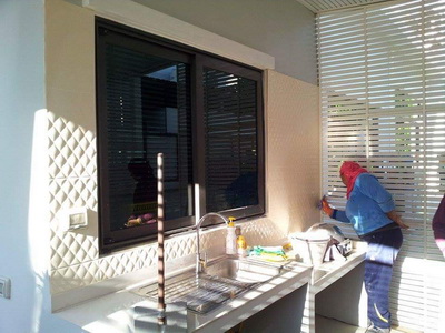 ปูกระเบื้องเคาเตอร์ และผนังครัว