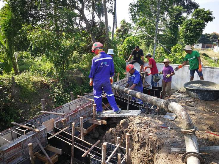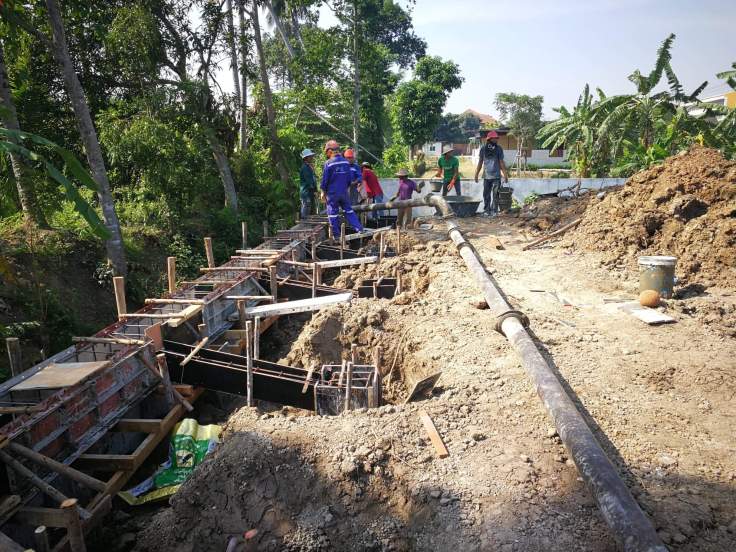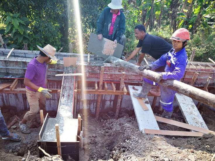วันนี้เป็นงานเทปูน เทคาน และสเตย์ แต่เนื่องจากบริเวณที่ก่อสร้างกำแพงกันดิน ห่างจากถนนเกือบ 50 เมตร จึงต่อใช้รถปั๊มคอนกรีต ปั๊มปูนผ่านท่อ เพื่อมาเทคาน ซึ่งก็ผ่าน และเสร็จไปได้ด้วยดีครับ