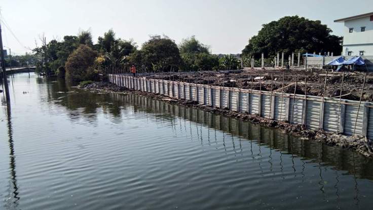 งานก่อสร้าง กำแพงกันดิน ยาวประมาณ 100 เมตร เนื่องจาก กำแพงกันดินเดิม ถูกดินที่ถมอัดจน กำแพงล้ม ทีมงานผมเลยต้องมาดำเนินการทำใหม่ ทั้งหมด ด้วยสเปคงาน เข็มไอ 22×10 เมตร ลงทุกระยะ 1 เมตร