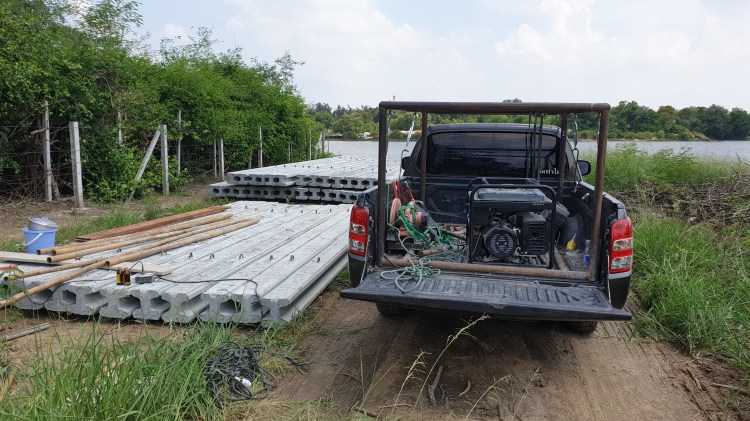 งานก่อสร้าง เขื่อนกันดิน ด้วยเข็ม ไอ 22 ยาว 10 เมตร ผนังกั้นดิน สูง 2.3 เมตร หน้างานนี้ เป็นเขื่อน ยาวทั้งหมด 40 เมตร ก่อสร้าง ริมบึงน้ำขนาดใหญ่ ครับ