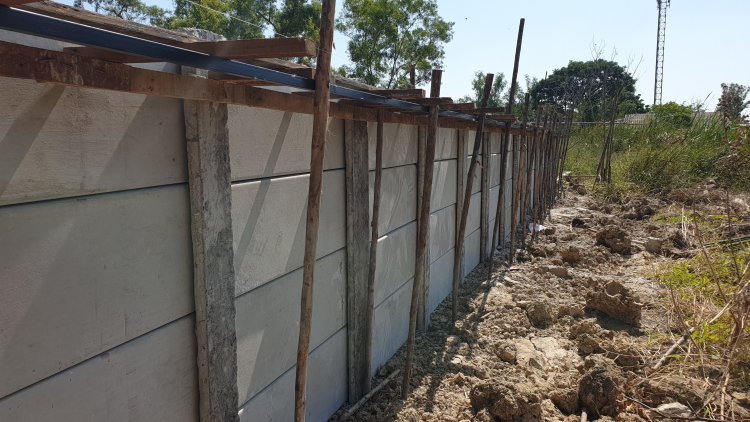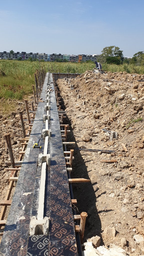 งานก่อสร้าง กำแพงกันดิน สูง 1.6 เมตร ยาว 38 เมตร กดเสาเข็ม เสียบแผ่นผนังกันดิน เสร็จเรียบร้อยครับ