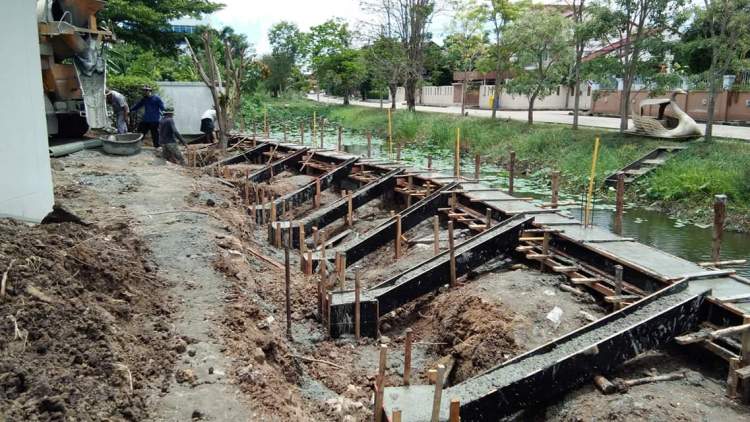 งานก่อสร้างเขื่อน สำหรับบ้านริมน้ำ หมู่บ้านปรารถนา รังสิต คลอง 5 ครับ